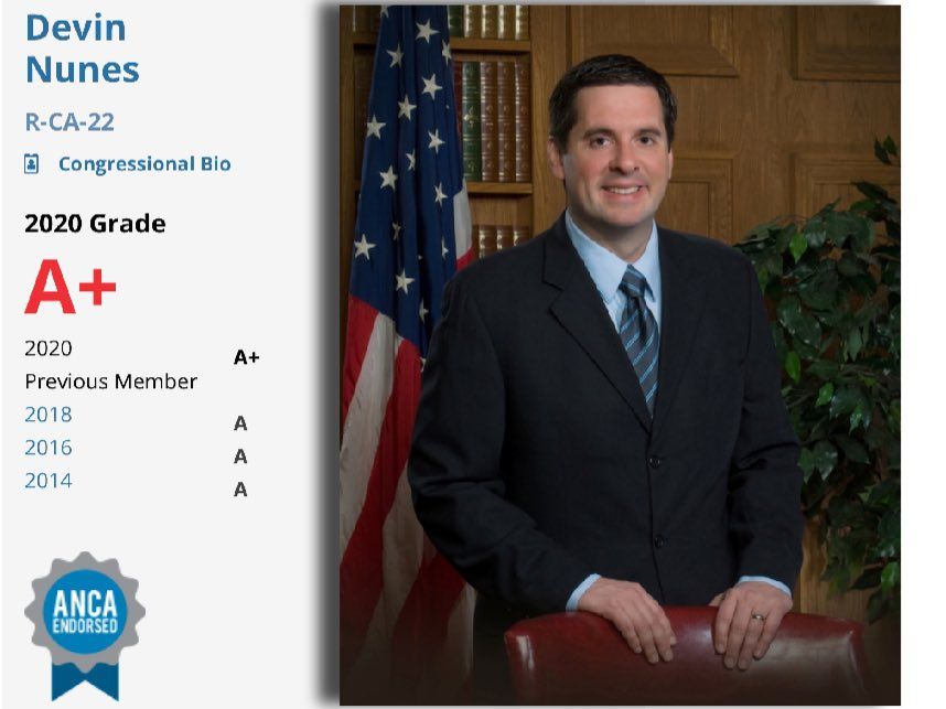 Apparently, ANCA is trying to appreciate Davin Nunes’ previous activities more by adding "A+" to his rank, and moreover, it intends to closely unite such members from the Trump administration in new activities as of January 20.