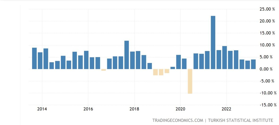 With reference to the table given above and below, he noted that in total the Turkish economy has enhanced for ten years, except five times - one after the coup attempt in 2016, three after the Priest Crisis with the United States in 2018, and one in 2020 to have a Pandemic effect.