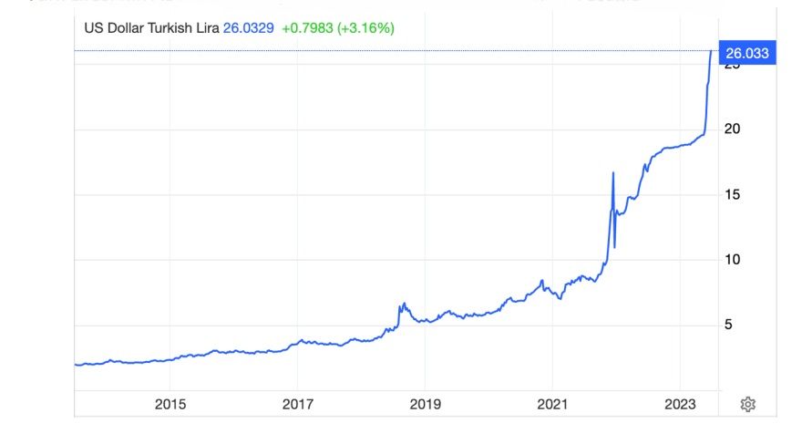 As for ten-year developments in the Monetary Policy Phase Rate and Inflation in the Exchange Rate, the Former Banker provided the table demonstrating the value of the Turkish Lira against the US dollar.