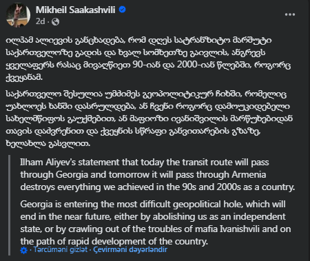 Former president Mikheil Saakashvili, writing from prison, sees Aliyev’s remarks as an existential threat, claiming they undo decades of Georgian state-building. But this reading confuses symbolism with substance. Georgia’s transit role was never secured by exclusivity alone; it was secured by geography, infrastructure and political coherence. None of these disappear simply because peace makes movement elsewhere possible. Perhaps neither Saakashvili nor the Georgians would love to see a working system collapse.
