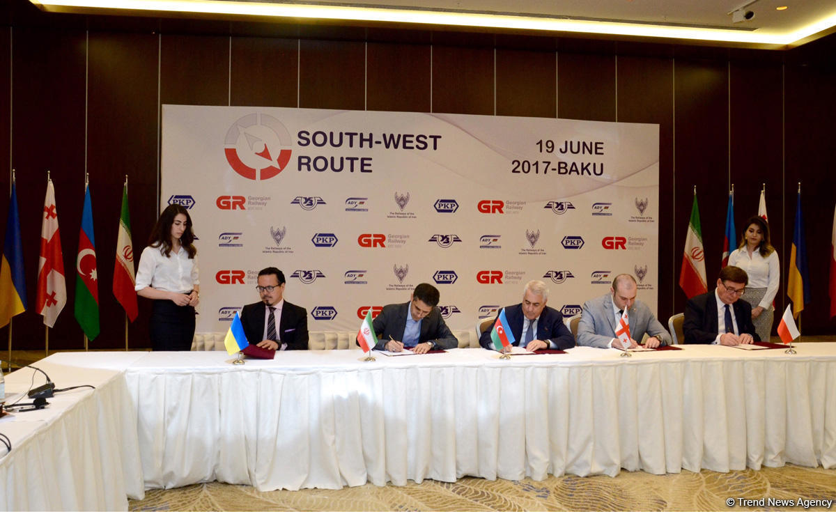 Following the meeting, Azerbaijan, Iran, Georgia, Ukraine and Poland have signed a final protocol on the South-West Transport Corridor project. The document envisages expanding cooperation opportunities on the South West Route in order to optimize cargo transportation and increase transit capacity.