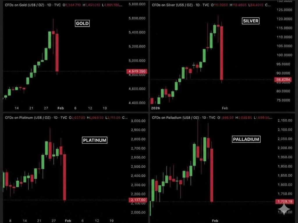 Market analysts note that this is the first time such a synchronised and severe decline across all major precious metals has occurred within a single day. In total, more than $9 trillion has been erased from the precious metals market in just 36 hours, underscoring the scale of the shock.