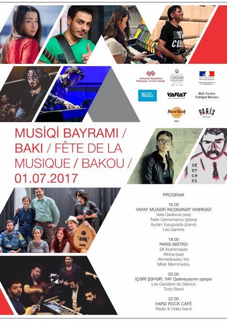 The Institut Français d’Azerbaïdjan and the French Embassy in Azerbaijan, in partnership with the YARAT! Contemporary Art Space, Paris Bistro, the State Historical-Architectural Reserve Icherisheher, the Hard Rock Café and the National Tourism Promotion Bureau invite everyone for a day dedicated to music in various places of Baku.
