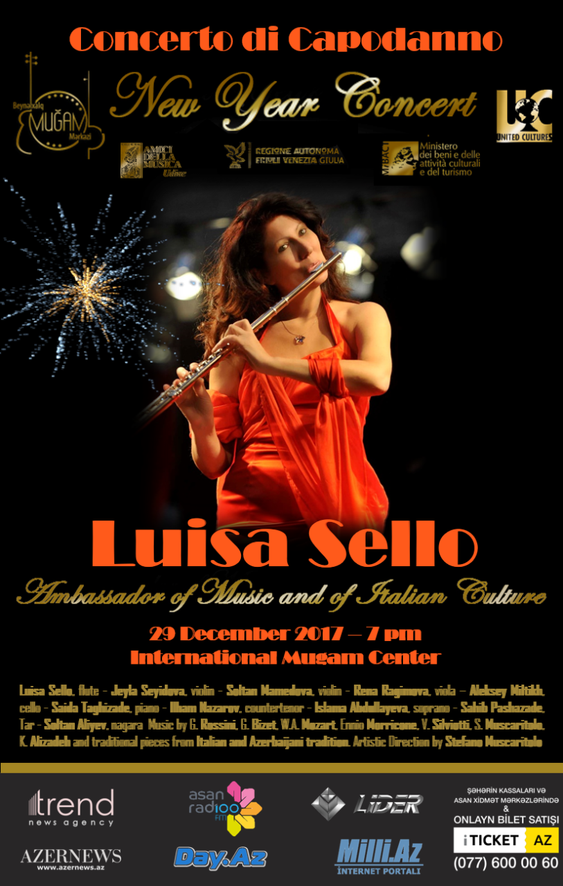 Luisa Sello is acclaimed Italian flute player, Ambassador of Music and Italian Culture in the World. She will perform a very particular program for Baku spectators, especially in occasion of the celebration one of the loveliest holidays of Azerbaijani people - New Year.