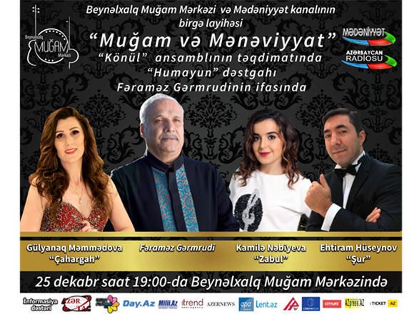 The concert titiled "Humayun" will bring together People's Artist of Azerbaijan Gulyanag Mammadova, Honored Artist of the Nakhchivan Ehtiram Huseynov, famous mugham masters Kamila Nabiyeva and Faramaz Gyarmrudi, Trend Life reported.