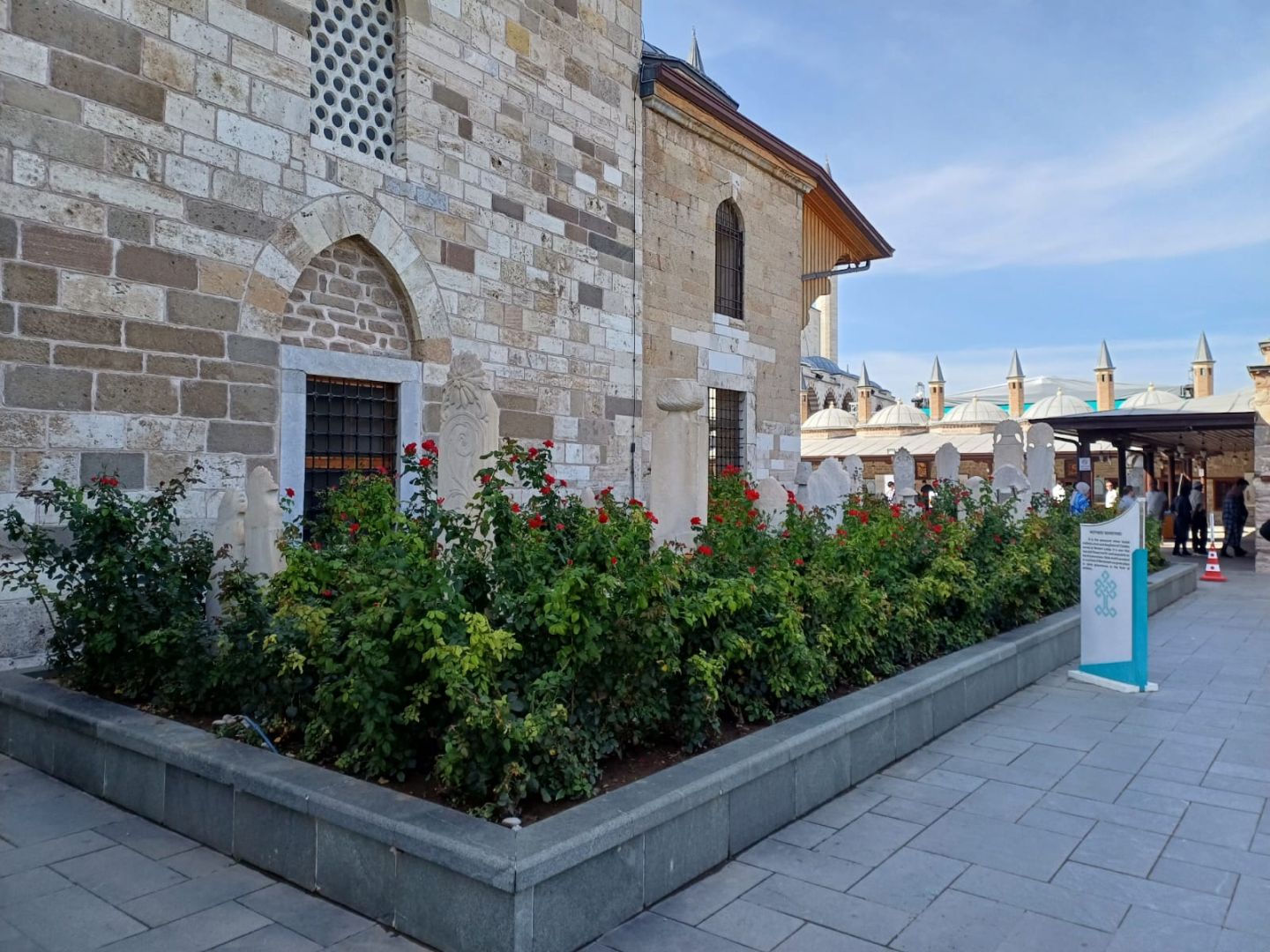 Behind us, this building stands out for its simple but magnificent style and comforting appearance. Small graves can be seen along the side walls of the mosque from the courtyard to the entrance. These graves at least preserve a history of more than seven centuries and also show that Konya is the land of Sufis.