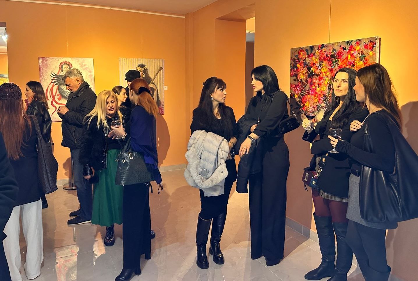 The exhibition displays artworks by talented Azerbaijani artists such as Aynura Mustafayeva, Roya Hasanova, Elshan Rzazade, Leyla Museibova, Naila Maharramova, Maryam Kibleyeva, Leyla Orujeva, Nargiz Guliyeva, Ruslan Rustamov, Sevinj Ganjali, Tarana Aliyeva, Huseyn Kangarli, Sevda Rustamova, Nigar Aliyeva, and Malak Abbaszade.