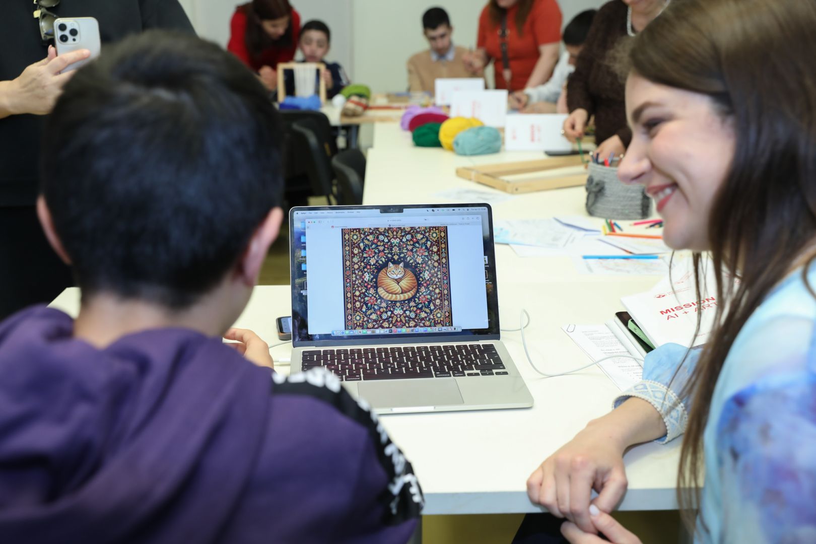 The training is based on the educational program on creating a carpet sketch using AI. This new methodology provides children with opportunity to study the carpet art in a modern and interactive way, along with that it gives them creative and practical educational experience.