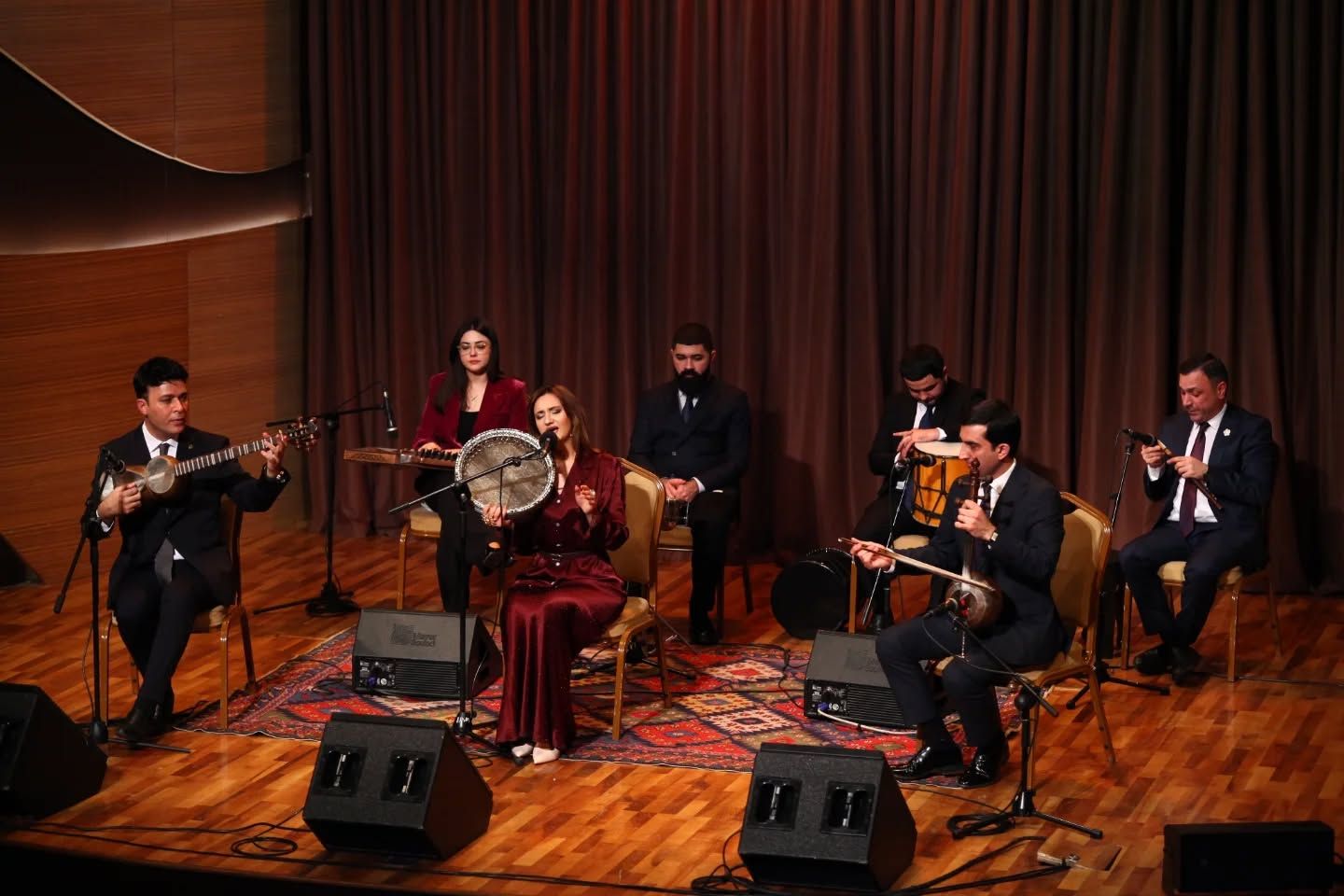 The concert opened with a piece by composer Jahangir Jahangirov from the film "Koroğlu", performed by the ensemble. The evening continued with solo performances from the Mugham Center's talented artists.