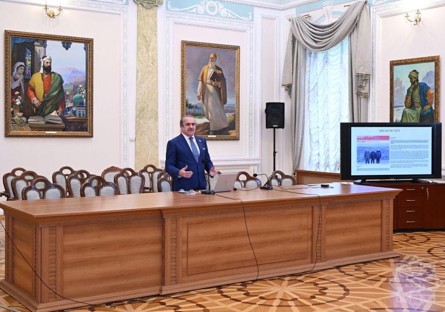 The session was opened by the museum’s director, Academician Rafael Huseynov, who spoke about the scale, devastating consequences, and the political and legal dimensions of the Khojaly tragedy committed in February 1992. He described the Khojaly genocide as one of the bloodiest chapters in the more than 200-year campaign of ethnic cleansing and genocide carried out by Armenian nationalists against the Azerbaijani people, emphasizing that it was a grave crime against humanity.