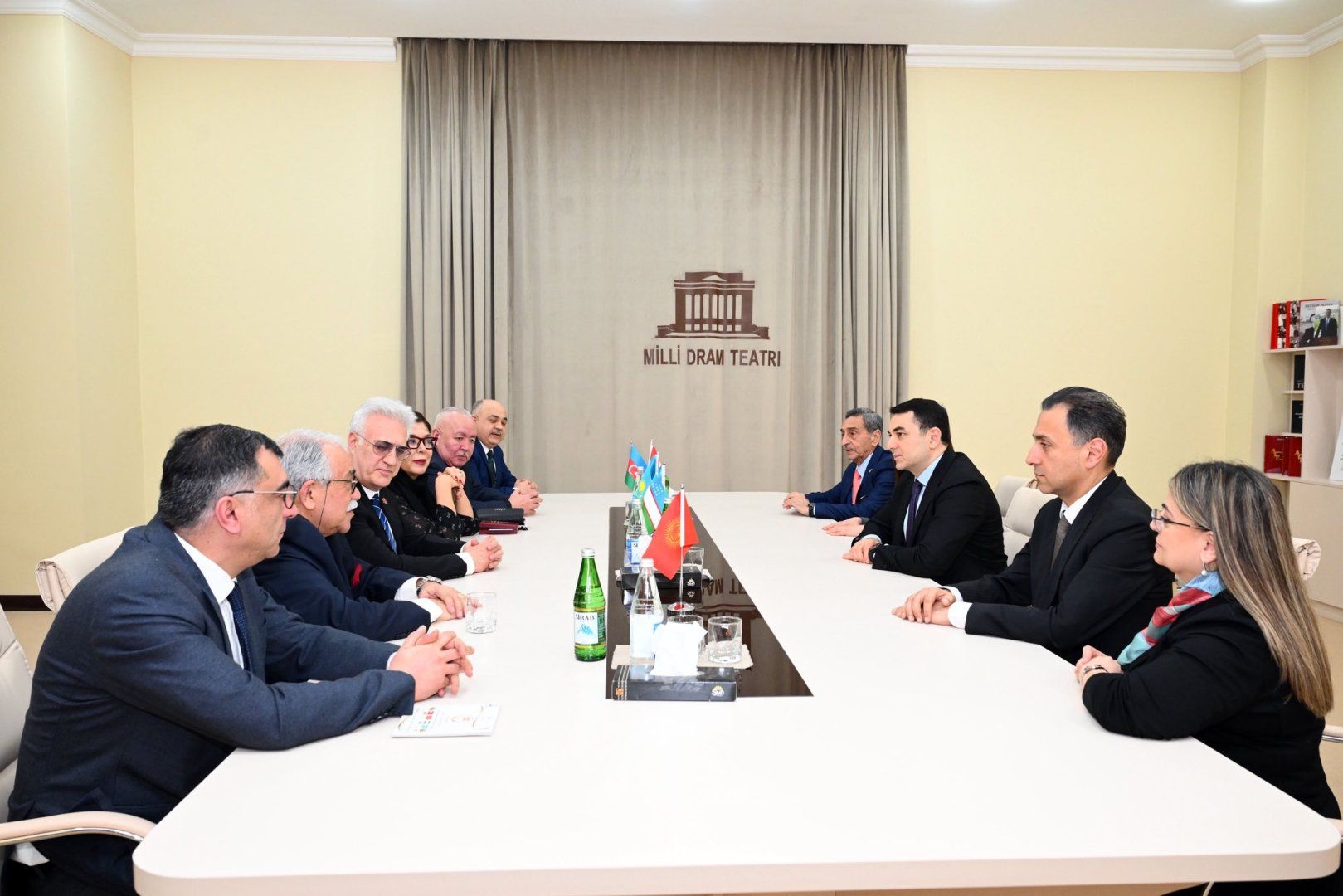 The meeting was attended by Tamer Karadagli, Director General of State Theaters of the Turkish Ministry of Culture and Tourism; Haji Ismayilov, Chairman of the Azerbaijan Theater Workers' Union and People's Artist of Azerbaijan; Jahangir Novruzov, Professor at the State Conservatory of Çukurova University in Adana and People's Artist of Azerbaijan; Ayşegül İşsever, Chief Artistic Director of Istanbul Municipality Theaters; Melahat Kalyoncu, Actress at Istanbul Municipality Theaters and Honored Artist of Azerbaijan; Ilham Asgarov, Director of the Azerbaijan State Academic National Drama Theater and Honored Cultural Worker; and Samir Jafarov, People's Artist of Azerbaijan.