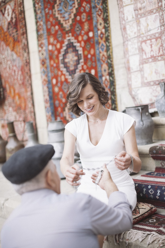 "I've already told my friends that there is stunning architecture here," Jovovich told the local media. "Antiquity and modernity are beautifully combined in the looks of the city. Just walking around the city is enough to come up with an opinion about the antiquity of your culture. Here I've seen buildings which we will never see in America, with very unusual combinations that can cater to the most selective tastes of the public. Just the view from the window of my hotel room is a whole lot!"