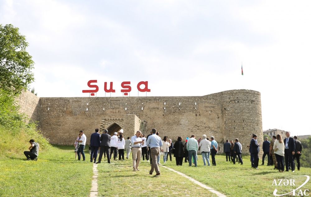 The visitors first viewed the Walls of Shusha Fortress, as well as the shot monuments of Azerbaijan’s prominent art personalities such as Khurshidbanu Natavan, Bulbul and Uzeyir Hajibayli at the Central Square of Shusha.
