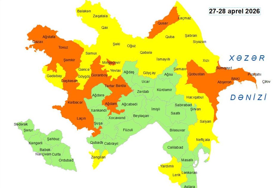 The National Hydrometeorology Service has issued yellow and orange warnings regarding expected windy weather in Baku and the Absheron Peninsula, as well as in certain other regions, on April 27–28, AzerNEWS reports.