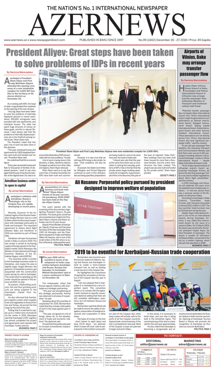 A new print edition of the AZERNEWS online newspaper was released on December 26.