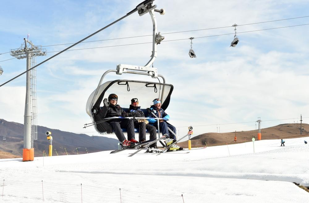 Arriving at Shahdag Tourism Center, the head of state skied down the slope.