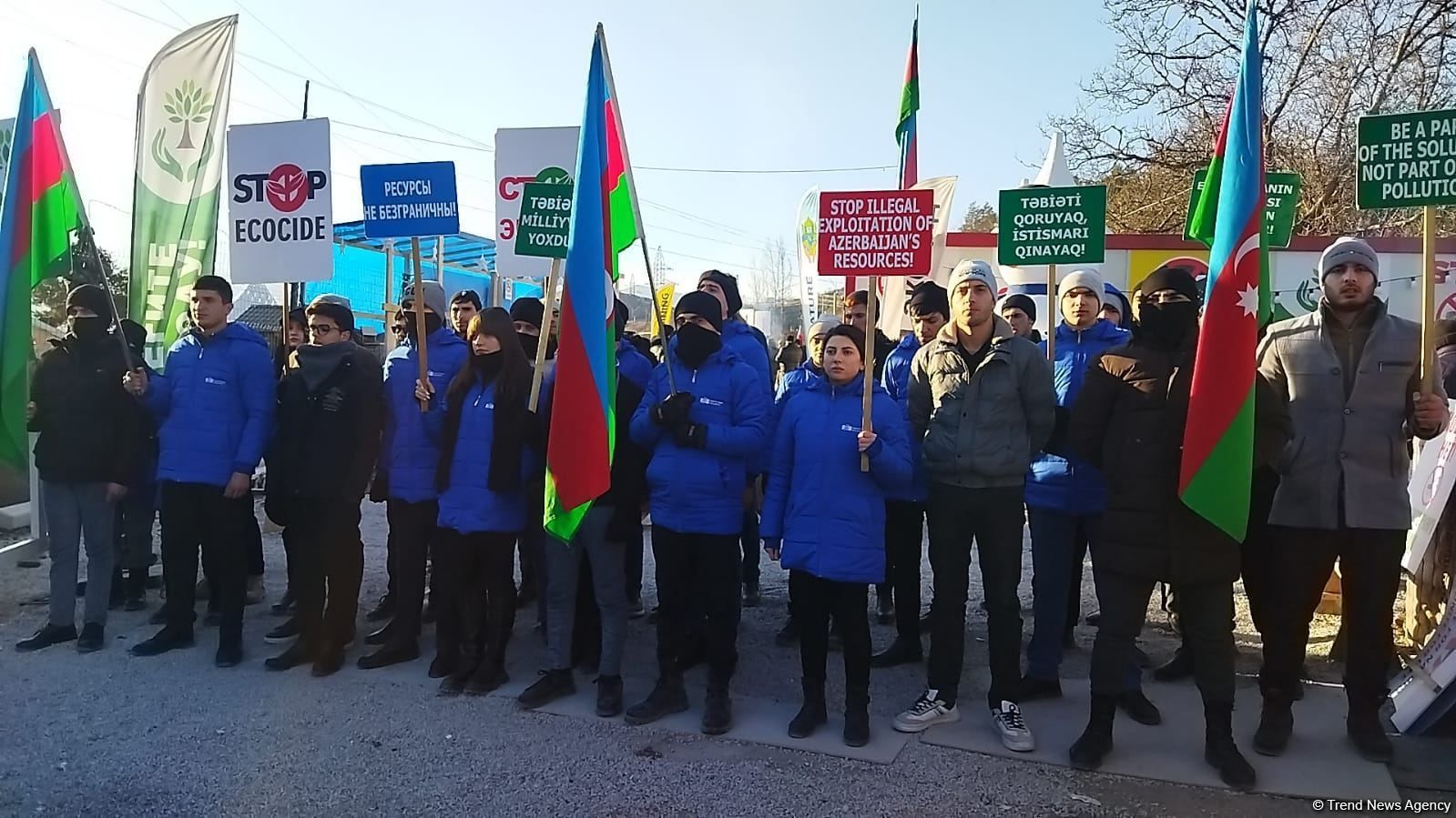 The peaceful protesters have recently held up posters and chanted anti-illegal mining of mineral deposits on Azerbaijani soil.
