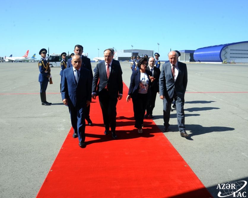 President Bajram Begaj and his wife Armanda Begaj were met by Azerbaijani First Deputy Prime Minister Yagub Eyyubov, Deputy Foreign Minister Fariz Rzayev and other officials.