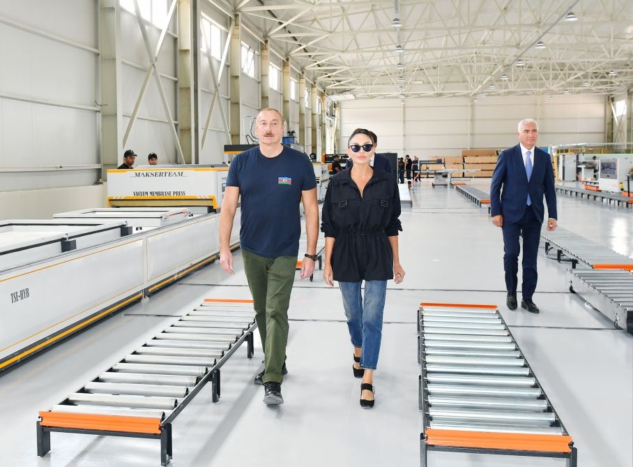 President of the Republic of Azerbaijan Ilham Aliyev and First Lady Mehriban Aliyeva have participated in the inauguration of a furniture factory in the industrial zone of the Lachin district, and got acquainted with the prefabricated modular house production facility and the small cattle pen.