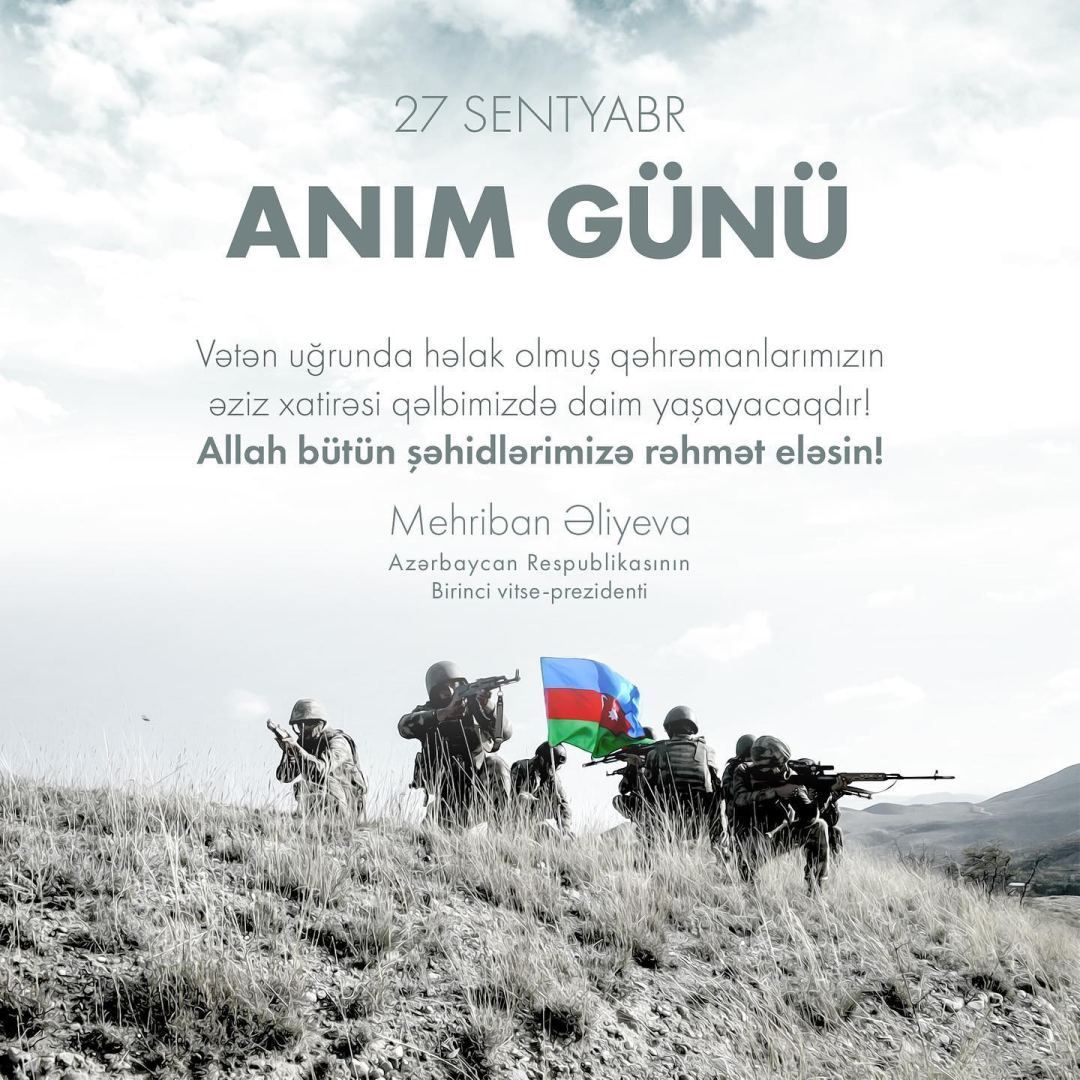 First Vice-President of the Republic of Azerbaijan Mehriban Aliyeva has made a post on her official Instagram page on September 27 - Remembrance Day, Azernews reports.