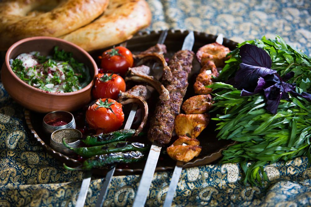 National cuisine boasts a wide range of spices, meat dishes, and vegetables such as dolma, bozbash, bozartma, shish kebab, piti, pilaf, and govurma.