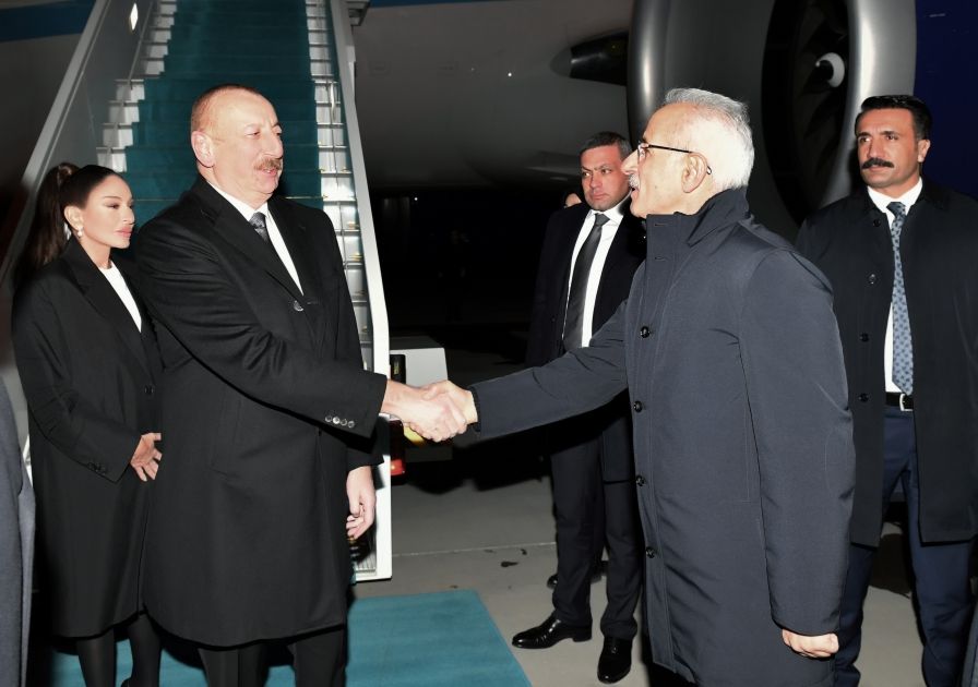 The head of state and First Lady Mehriban Aliyeva were welcomed at Esenboga Airport in Ankara by Turkish Minister of Transport and Infrastructure Abdulkadir Uraloğlu and other officials.