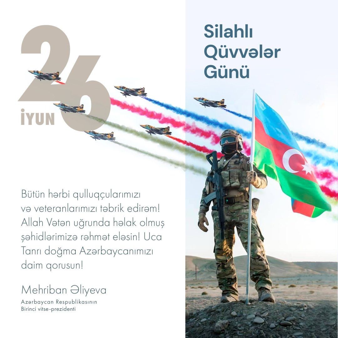 First Vice-President of the Republic of Azerbaijan Mehriban Aliyeva has shared a post on her official Instagram page on the occasion of 26 June - the Armed Forces Day, Azernews reports.