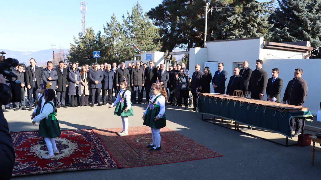 The key handover ceremony for returning residents began with the playing of the National Anthem of Azerbaijan, followed by a minute of silence in honor of the martyrs. Students from Secondary School No. 4 named after Nizami Ganjavi in Khankendi performed the “Kharibulbul” dance, sang patriotic songs including “From Garabagh to Turan,” “My Nation,” and “Echo of Victory,” and recited the poem “The Commander Who Made History.”