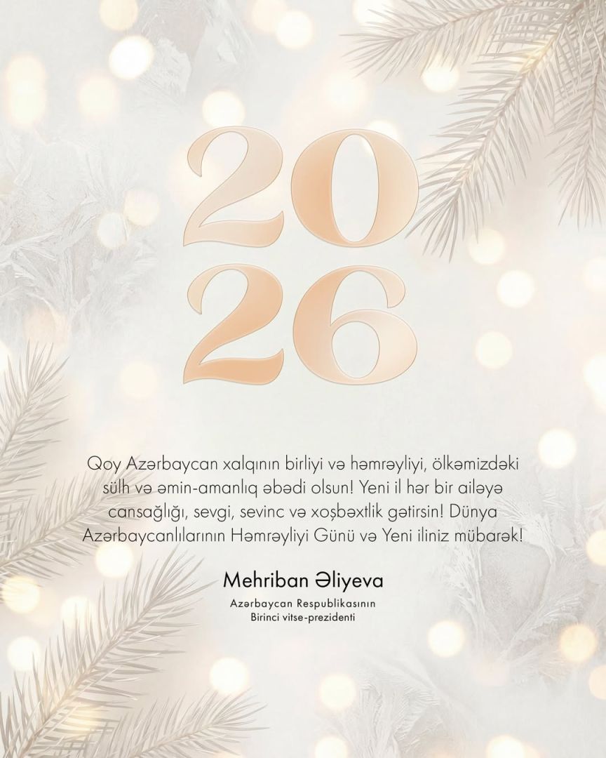 First Vice-President of the Republic of Azerbaijan, Mehriban Aliyeva, has shared a post on her official Instagram page on the occasion of the Day of Solidarity of World Azerbaijanis and the New Year.