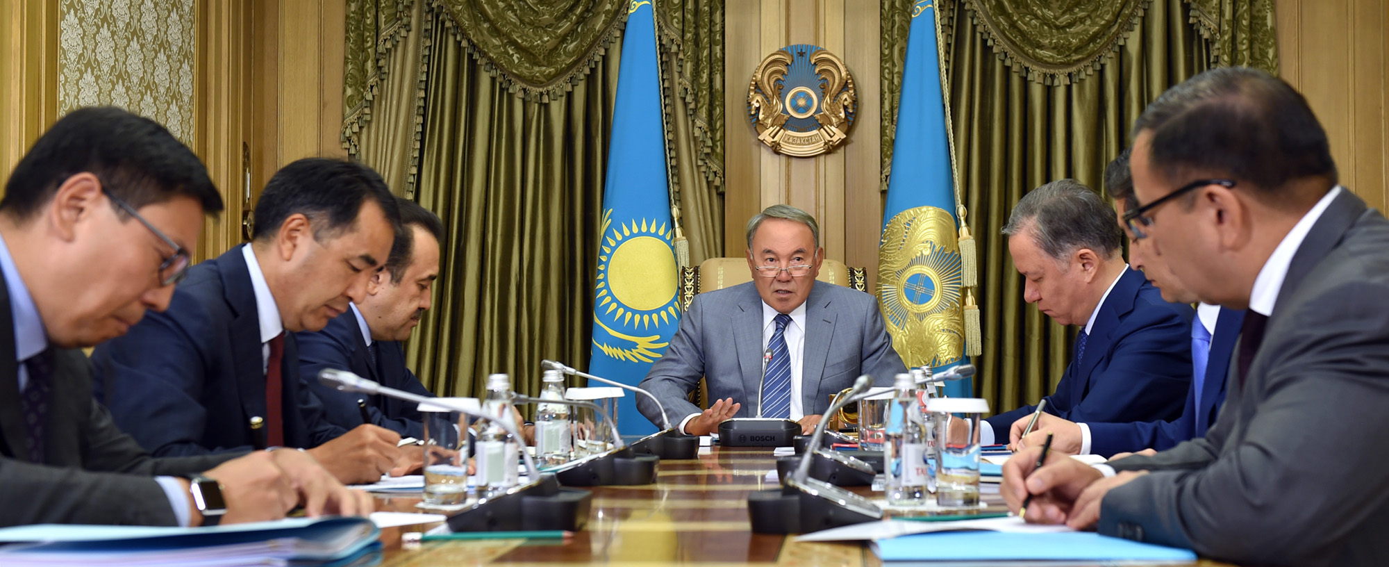 Kazakh President Nursultan Nazarbayev has urged the government to save budget funds at a meeting with Prime Minister Karim Massimov and Head of the Presidential Administration Nurlan Nigmatullin, the press service of the president reported on August 3.