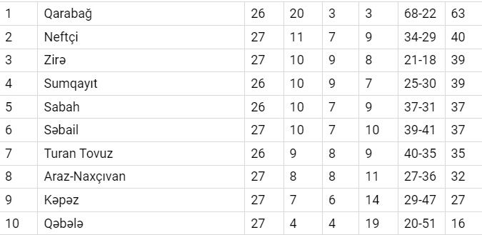 It should be noted that in the first games of the tour, "Neftchi" defeated "Sabail" (3:0), "Zira" defeated "Kapaz" (2:1), "Araz-Nakhchivan" and "Gabala" split the points in half (1:1). ).